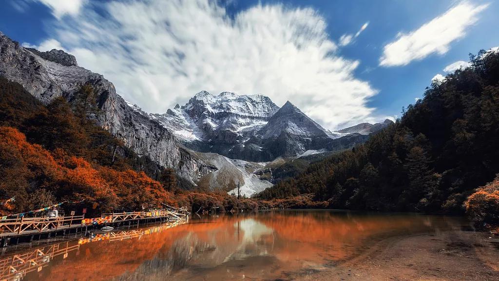 早上從稻城出發(fā),前往桑堆的途中可以停留拍攝紅草地(該景點(diǎn)為季節(jié)性景觀,只有在每年的九月中旬到十一月上旬才能看到紅草),在秋天的時(shí)候,配合上后面泛黃的樺樹(shù),倒映在水塘中,是非常漂亮的一道美景;