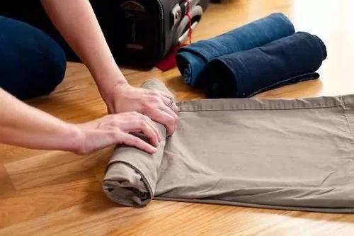 3.將衣服卷起來打包,這樣能節(jié)省更多的空間。