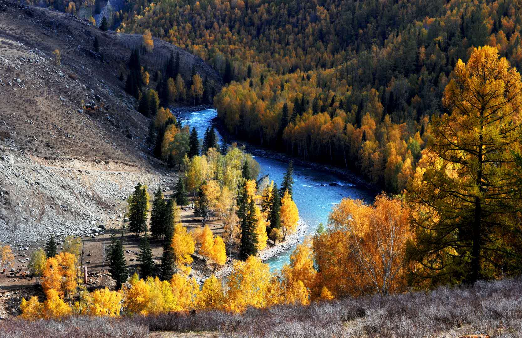 【禾木景區(qū)】(含區(qū)間車,游覽2.5--3小時)白樺林腳下的禾木河水在陽光下閃爍金光,與木屋、炊煙、擠牛奶的牧民,以及牧羊的孩童一起,營造著家園的溫馨,釋放著一種生命獨有的暖意。吹著風,看著雪山,享受星空和大地帶給您最好的旅行?;蝌T馬在圖瓦人村落中漫步,享受牧民的田園牧歌??δ撬箙^(qū)域最美的景色在禾木,層林浸染,絢麗多彩,是一處典型的原始自然生態(tài)風光。在禾木村周圍的小山坡上可俯視禾木村以及禾木河的全景,一棟棟的小木屋和成群結(jié)隊的牧群,與雪峰、森林、草地、藍天白云構(gòu)成了獨特的自然與文化景觀。