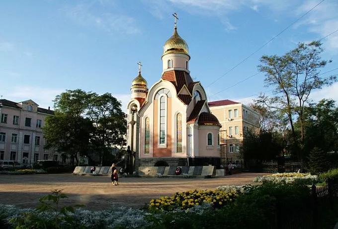 哈巴羅夫斯克最經(jīng)典的建筑莫過于這里最大的東正教教堂——金頂教堂,金光燦燦的洋蔥頭據(jù)說用了3噸多的俄羅斯特產(chǎn)紫金融造而成,可以說是相當奢侈了。