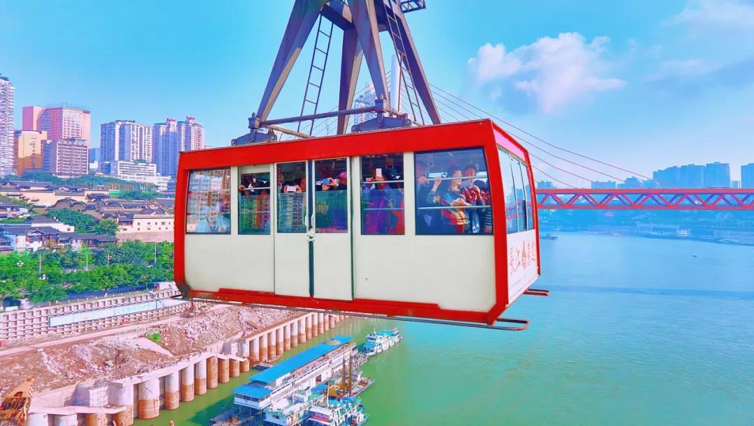 搭乘能容納50人的巨型“箱子”,腳下是濤濤的江水,身側(cè)是氣派的大橋,前方是林立的高樓,千余米的距離、5分鐘的時(shí)間,足以一窺山城的無(wú)限魅力。