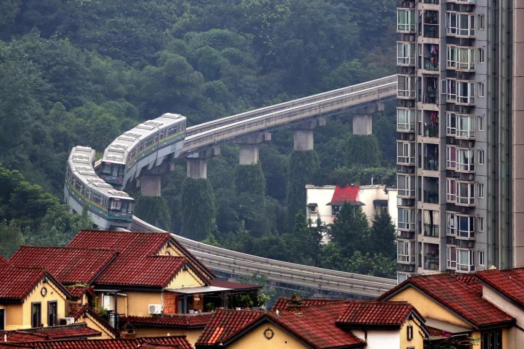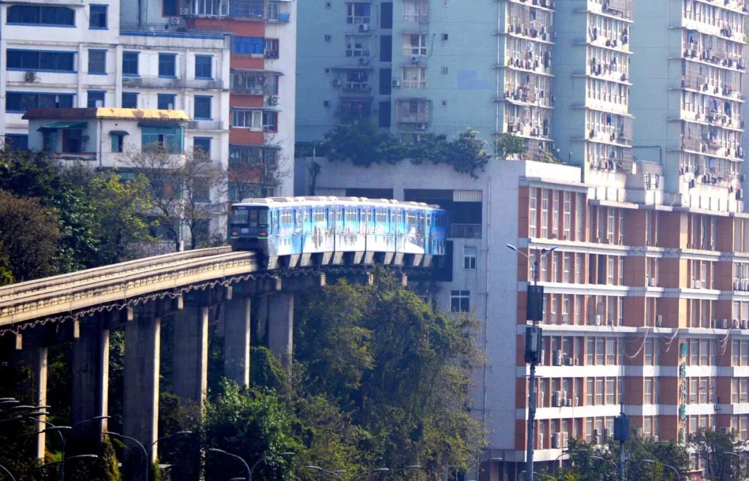 在山城重慶,軌道隨山勢(shì)蜿蜒,其中最急的彎道當(dāng)屬2號(hào)線平安站到大渡口站段,約90度的彎道,如過(guò)山車一般驚險(xiǎn)刺激。