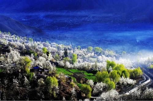 4、前往“中國(guó)雪梨之鄉(xiāng)”美譽(yù)的金川,萬(wàn)物復(fù)蘇的初春三月,正值金川成千上萬(wàn)棵梨樹花期,雪白色的梨花競(jìng)相開放,一片片、一層層的鋪散開來(lái),漫山遍野的白色花海中夾雜零星新綠,空氣中氤氳著梨花清香,眼是天堂,身亦是天堂。