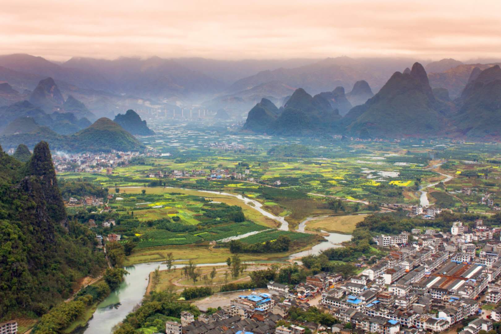興坪鎮(zhèn)位于陽朔東北部,距縣城25公里,漓江在此繞了一個大彎。