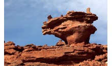 海森楚魯怪石城位于阿拉善右旗努日蓋蘇木境內,距旗府所在地220公里?!昂I敗睘槊烧Z音譯,意為象鍋一樣的石頭。在方圓二十余公里的地方,大到幾十立方,小到拳頭大小的風蝕原石隨處可見, 怪石林立,形態(tài)各異,有象臨空欲飛的碩大雄鷹,有象“蘑菇云”……各式各樣,栩栩如生,與云南石林,黃山怪石相比也并不遜色,使人感到大自然神賜般的無窮魅力。