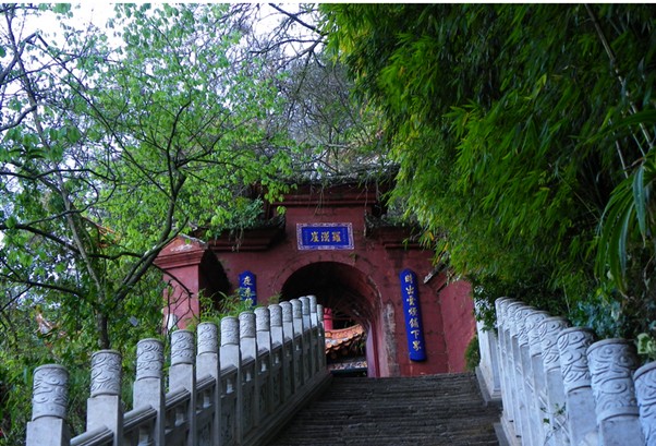 龍門,位于三清閣南面,包括北由三清閣“別有洞天”石洞門起,南至達(dá)天閣止的整個在千仞削壁上的石窟石道工程。在羅漢山與掛榜山之間,削壁上由北向南原有4個巖洞,明嘉靖年間,北面靠三清閣的一個巖洞已開發(fā),建了“穴石小樓”,當(dāng)年登這個洞需攀鐵索過棧道危磴。