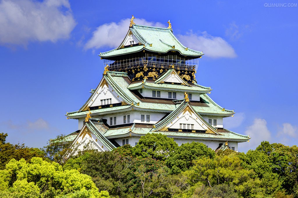 現(xiàn)存的大阪城為1931年由民間集資重建,外觀5層,內(nèi)部8層,高54.8米,7層以下為資料館,8層為瞭望臺。城墻四周建有護城河,附近有風(fēng)景秀麗大阪城是大阪最著名的旅游觀光景點,它以天守閣為中心,位于大阪市的中央?yún)^(qū),是大阪的象征性景點,也是游客們在大阪旅游的必到之地,版權(quán)所有山東聊城聊之旅國際旅行社有限公司,大阪城的庭園和亭臺樓閣。漫步河邊,奇花異卉,滿目青翠,充滿詩情畫意。城內(nèi)櫻花門頗為著名,當年大阪城遭遇火災(zāi),僅這一道全部用巨石砌成的櫻花門屹立無恙,成為僅存的遺跡。大阪城內(nèi)城中央聳立著大阪城的主體建筑天守閣,巍峨宏偉,鑲銅鍍金,十分壯觀。內(nèi)部保存有豐臣秀吉的木像、使用過的武器及繪畫等。從天守閣頂層可俯瞰大阪周圍的美景。如今大阪城已被定為特別史跡。
