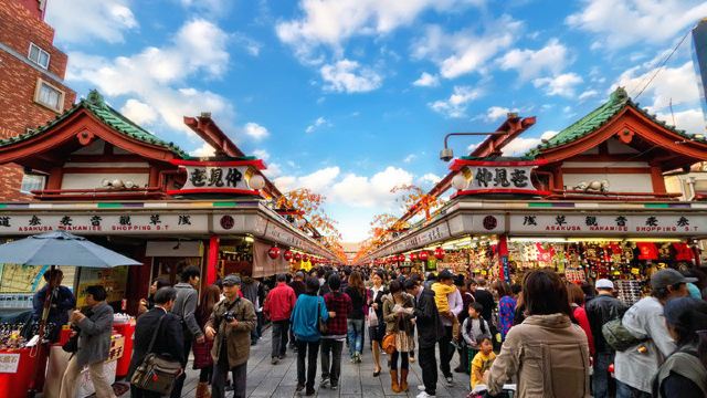淺草是東京的發(fā)源地。淺草寺是東京最古老的寺廟。也叫淺草雷門觀音寺,該寺正式名稱為金龍山淺草寺。在門的中央有一下垂的巨大燈籠,上面寫著“雷門”二字,已成為淺草的象征。版權(quán)所有山東聊城聊之旅國際旅行社有限公司,轉(zhuǎn)載必究!據(jù)傳公元628年,一對以捕魚為生的兄弟在隅田川中發(fā)現(xiàn)了觀音像,認(rèn)為是“觀音顯靈”。于是,人們在當(dāng)?shù)匦藿ㄋ略海┓钣^音。