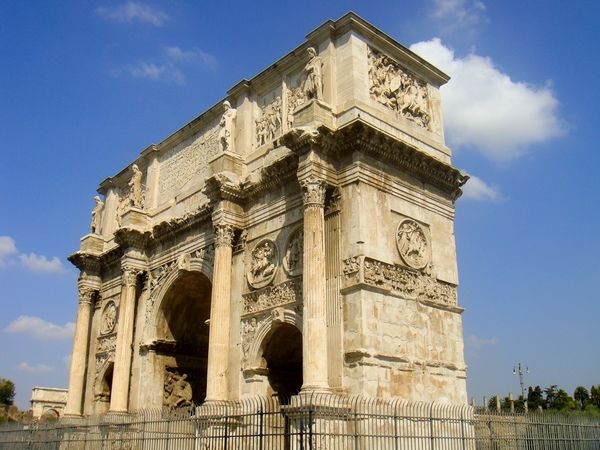 這座拱門上面的絕大多數(shù)裝飾品其實(shí)都是取白于以前的皇帝們所建造的各種建筑物,這也表明羅馬的藝術(shù)已經(jīng)開始走下坡路了。所以君士坦丁凱旋門是羅馬三座凱旋門中建造最晚的一座。