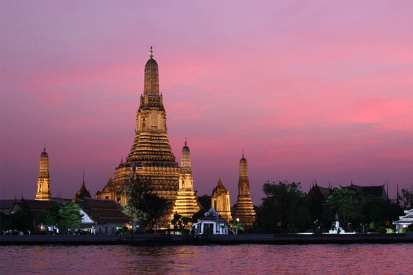 在湄南河及其支流上游覽,最引人眼球的,要算是那些宏偉壯麗、金光閃閃的寺廟、佛塔。這一群群多姿多彩的佛教建筑,與市內(nèi)高層建筑、居民住宅混建在一起,構(gòu)成一道奇特、亮麗的風(fēng)光。導(dǎo)游介紹:廟宇建在河左岸的較多,曼谷市內(nèi)約有一萬多間,所以泰國享有“千佛之國”、“黃袍之國”的聲譽。在湄南河及其支流兩岸,有幾座著名的寺廟:一是玉佛寺,它與大王宮相連,整座佛寺裝飾得金碧輝煌,富麗堂皇。大雄寶殿內(nèi)供奉的翡翠玉佛(釋迦牟尼),是泰國最重要最有價值的鎮(zhèn)國之寶。二是鄭王廟,位于湄南河西岸。它曾被定為鄭昭王(鄭昭王之父是華人)的御用寺院,其最富吸引力的建筑物是位于正中的“拍攀”大塔。這塔高79米,在晨曦之際,陽光照射,寶塔的頂峰會發(fā)出萬丈光芒,因此寺廟又被稱為黎明寺。三是臥佛寺,又稱菩提寺,它與鄭王廟正好隔岸相望,是曼谷最老和最大的寺院。寺內(nèi)供奉著一尊獨特大臥佛。這里一向被視為泰國第一所民間教育中心,故享有“泰國第一大學(xué)”之美譽。此外還有王孫寺、金佛寺、云石寺、金山寺等著名寺廟。