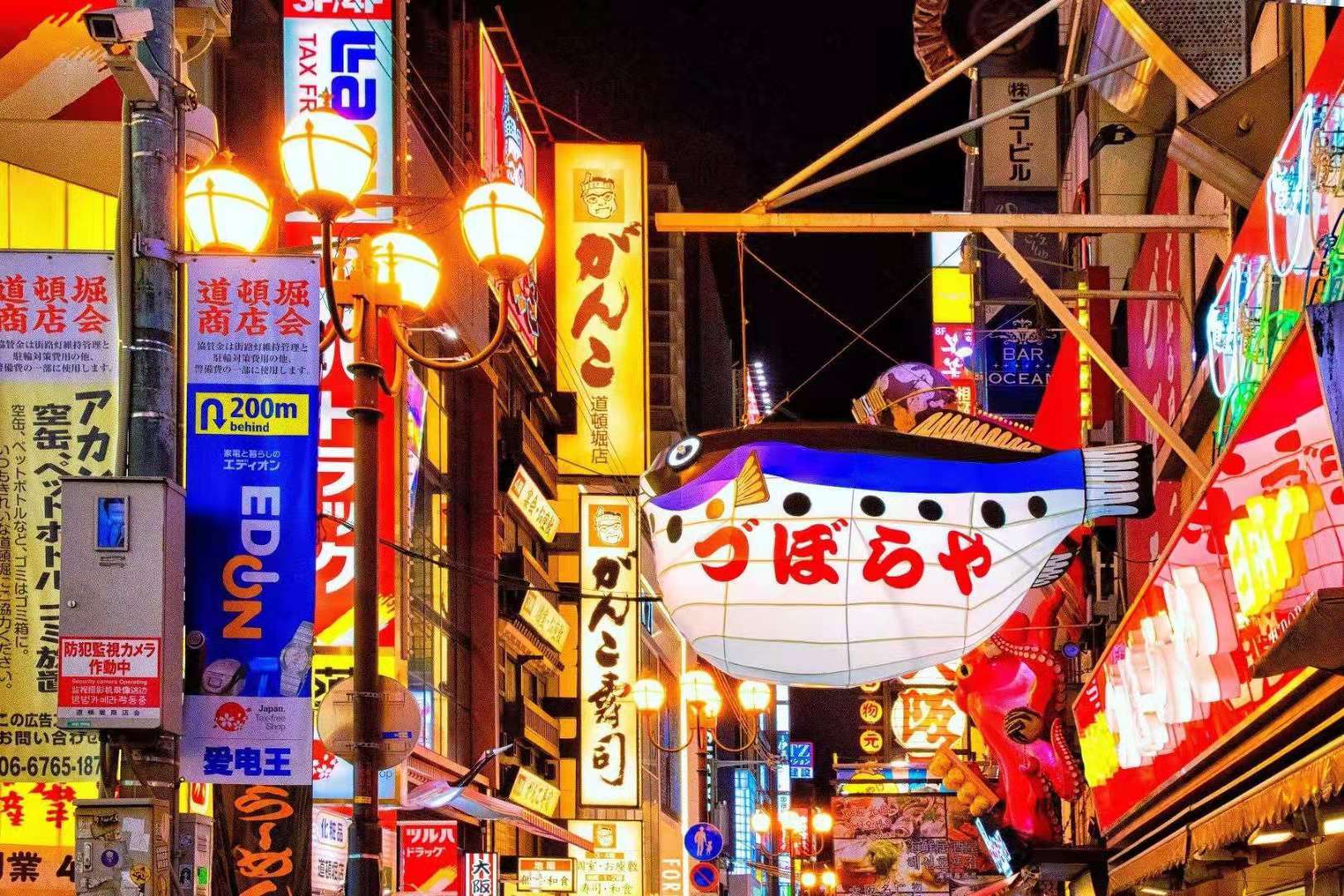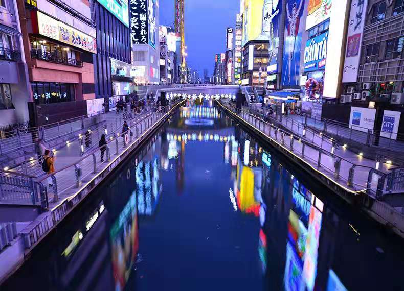 道頓堀是沿著道頓堀川南岸的一大繁華街區(qū)。日本人常說(shuō)“吃在大阪”,可見這里的飲食店之多,還有成片的娛樂(lè)設(shè)施,是最受大阪市民歡迎的地方。這里有不少電影院,還有上演木偶戲的“文樂(lè)座”和表演大眾曲藝──“寄席”等傳統(tǒng)藝術(shù)的劇場(chǎng)。道頓堀作為大阪的代表地區(qū)常常在國(guó)內(nèi)外的電影中亮相。在護(hù)城河兩岸布置了許多花壇和噴泉,版權(quán)所有山東聊城聊之旅國(guó)際旅行社有限公司,轉(zhuǎn)載必究!建立起一個(gè)很好的市區(qū)自然環(huán)境,使觀光客和市民樂(lè)于光顧這里。道頓堀川的兩岸的室外廣告和霓虹燈連成了一片,有些建筑物的整個(gè)墻面被五光十色的霓虹廣告裝點(diǎn)。每到夜晚,燈光裝飾的招牌、霓虹燈光和道頓堀川水面上的反射光交相輝映,把城市點(diǎn)綴得更加華麗漂亮。