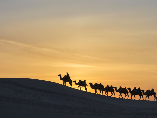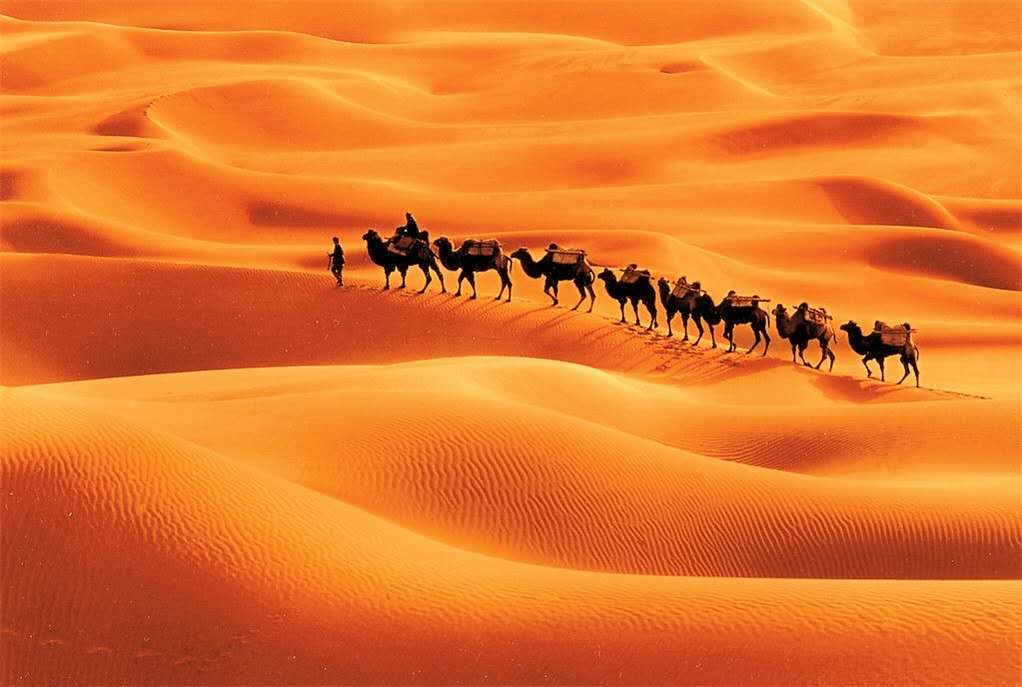 在這坦蕩的大漠中,乘一峰駱駝?dòng)^日出日落胸中自有一番豪邁。而佇足大漠邊、面積達(dá)1000平方米的達(dá)斯坦古城宮殿遺址,每當(dāng)大風(fēng)過后,從流沙中露出的紅、黃、藍(lán)色的陶片和年代久遠(yuǎn)的古幣,讓人在懷古幽靜中又有幾分尋寶的驚喜。