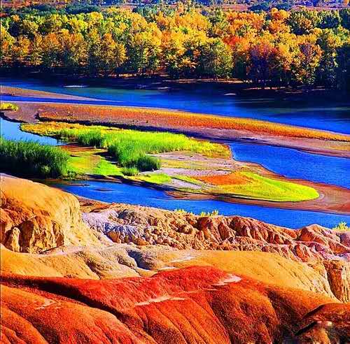 5—10米,土梁高一般為5—15米,最大高度約25米,高低錯落,分布面積3平方公里左右。這里地處干旱多風(fēng)地帶,由于河岸巖層間抗風(fēng)化能力的強弱程度不一,形成參差不齊的輪廓,巖層以紅色、土紅色、淺黃和淺綠色砂巖、泥巖及砂礫巖組成,巖石色澤各異,版權(quán)所有山東聊城聊之旅國際旅行社有限公司,轉(zhuǎn)載必究!五彩繽紛,狀如彩色古堡、怪獸、峰叢等奇特造型的地貌,是典型的彩色丘陵。大風(fēng)起時,會發(fā)出怪異的聲音,更增添了神秘的色彩。它的開發(fā)建設(shè)無疑對喀納斯景區(qū)是景上添花,客流量及經(jīng)濟效益可觀。五彩河岸將以其典型和獨特的地貌形態(tài),吸引著國內(nèi)外游客來此旅游觀光。