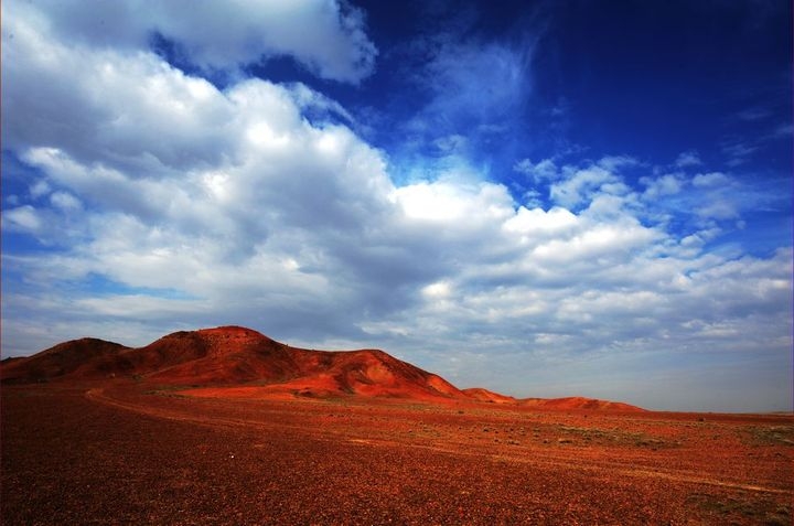 準(zhǔn)葛爾盆地,是我國(guó)的第二大盆地,被稱(chēng)為“史前地質(zhì)博物館”。這里有美麗的五彩城,有大片的硅化木和恐龍化石。距離烏魯木齊約250公里,位于準(zhǔn)噶爾盆地東南部的火燒山便是其中一景。火燒山和火焰山不同,火焰山因溫度高而聞名天下,而火燒山是因?yàn)槠渖襟w顏色而聞名。