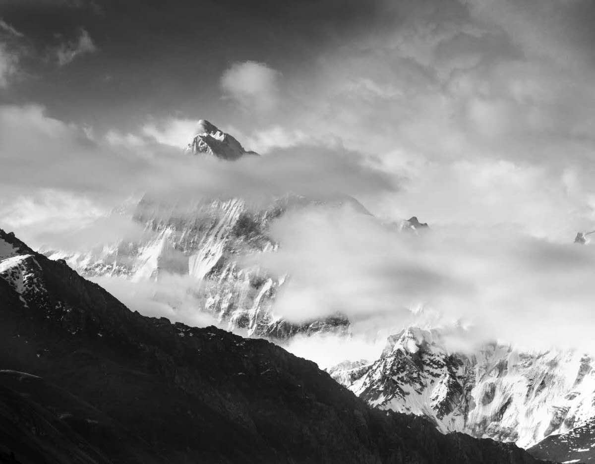 木扎爾特冰川是世界上絕無僅有的天然冰川,險隘處處,危機(jī)四伏,冰川、冰縫、冰河、冰塔、冰山以及洶涌的木扎爾特冰河都會給人難以想像的危險。我們有些凍僵了的身軀,只能依靠自己體力和毅力,在絕境處尋覓,在高海拔的冰川上艱難地前行。人行走在漫長的冰川上,就像行走在煉獄之上,如果雙腳行走不穩(wěn)或身體不能平衡支撐,就很可能帶來滑倒的生命危險??梢韵胂袢绻圆恍⌒囊幌伦踊梗M(jìn)萬丈冰窟深淵,后果殘忍不堪。臨近傍晚,我們繼續(xù)踏著冰川前行。由于冰川的退縮,冰川末端落差很大,這短短300米的距離落差竟達(dá)500米,而這段路線是木扎爾特冰川最為艱難險峻的路段。如果想下到谷底,想都不要去想,因為此處更是危險。我們艱難地下了冰川后,就進(jìn)入了南木扎爾特河谷,河谷愈來愈寬闊,時下正值夏季,冰雪在盡情地消融,近800米寬的河床到處都是水。在河的東岸,有一處100多米長,近150米高的陡壁,滔滔河水從陡壁流過,冰川由此而中斷。