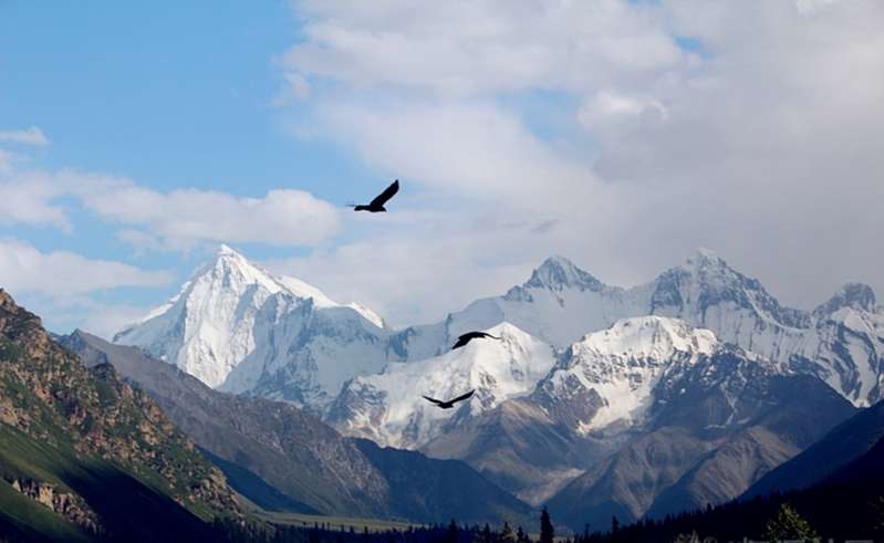 冰川形成于數(shù)萬年的地質(zhì)運動,冰谷兩側(cè)的山峰的脫落,在冰川上覆蓋了一層石塊,正面凝望,巨大的冰川宛若一條褐色的巨龍,從潔白如玉的雪山上傾瀉奔下。木扎爾特冰川是很少有人涉足的冰川,由于冰塊的擠壓運動,在裂縫交錯的冰川上隆起了小山似的冰塔,冰川的融化,在不到2公里寬的冰川上沖出了很多條既寬又深的冰溝,溝底咆哮的冰河震耳欲聾,令人頓感懾魂奪魄。