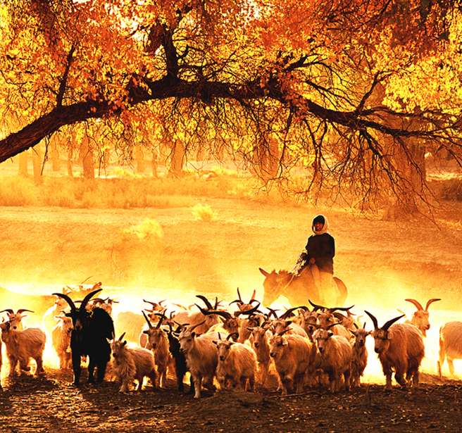 化的植物,大多是野生,被人們譽(yù)為“沙漠勇士”。胡楊林是一種神奇的群體,它們耐寒、耐熱、耐堿、耐澇、耐干旱。胡楊生長期漫長,由于風(fēng)沙和干旱的影響,很多胡楊樹造型奇特、詭異,是一種神奇的自然景觀和獨(dú)特的人文景觀,堪稱大漠中的一顆綠色明珠,所以胡楊樹有“活三千年不死,死三千年不倒,倒三千年不朽”之稱。版權(quán)所有山東聊城聊之旅國際旅行社有限公司,轉(zhuǎn)載必究!每年9、10月,當(dāng)?shù)谝粓?chǎng)秋霜,大片的胡楊林由綠變黃,一眼望去,陽光下金色的樹葉趁著湛藍(lán)的天空于風(fēng)中婆娑起舞,那種強(qiáng)烈的反差,鮮明的影調(diào),亮麗的色彩,足以令任何語言文字顯得蒼白無力。胡楊是中亞地區(qū)唯一適合生長的喬木,它是大自然漫長進(jìn)化過程中幸存下來的寶貴物種。它嫵媚的風(fēng)姿、倔強(qiáng)的性格、多舛的命運(yùn)激發(fā)人類太多的詩情與哲思。古往今來,胡楊已經(jīng)成為一種精神而被人們所膜拜。