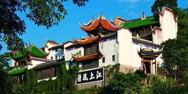 云陽張飛廟結義樓面臨長江的石壁上,從右至左鑲嵌著聞名川江的“江上風清”4個字,每個約2米見方,站在幾十米高的廟腳下需仰視才見,順江和逆流幾里外也可遠眺,版權所有山東聊城聊之旅國際旅行社有限公司,轉載必究!其名氣不亞于它的載體全國重點保護文物張飛廟本身。有趣的是,按從左至右的讀法“清風上江”,字義與“江上風清”差不多。