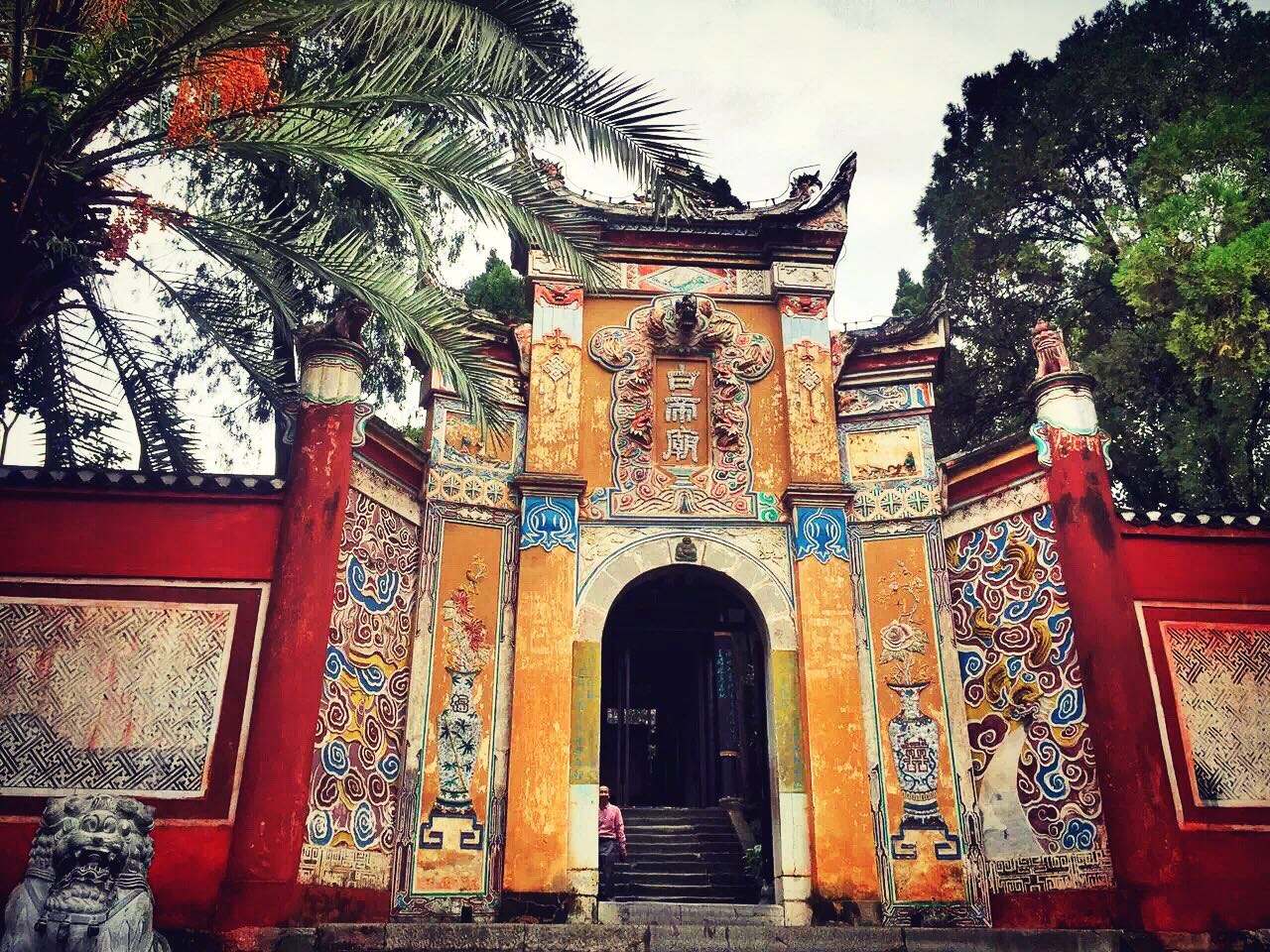 東漢建武十二年(36年),劉秀入川,公孫述戰(zhàn)死,白帝城毀于戰(zhàn)火.如今,城墻遺跡仍清晰可見。在公孫述稱帝的12年間,各地戰(zhàn)亂頻繁,而白帝城一帶卻比較安寧。后人為懷念他,在白帝山上建廟,立其像祭祀,故稱“白帝廟”。白帝廟坐落在瞿塘峽口的白帝山上。遠(yuǎn)遠(yuǎn)望去,紅墻顯影,樹木蔥郁,樓臺亭閣點綴其問。朝霞如錦、彩云繚繞之時,更有仙山瓊閣之美。