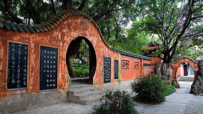 東、西碑林分別位于明很殿與武侯祠兩側(cè)。這里薈萃了從隋代至清代的70多塊碑刻,那篆、隸、楷、行、草各種字體的埤文,是中國書法藝術(shù)精品。其中最著名的是兩塊隋碑,距今已有1300余年。一是《龍山公墓志》(全稱《大隋開府儀同三司龍山公墓志》),一是金輪寺舍利塔碑。在東碑林,《鳳凰碑》和《竹葉碑》風(fēng)格獨特,堪稱瑰寶。東碑林的碑石上被清代人刻上了:“同治九年六月十九日,大水為災(zāi),高于城五丈”的字樣,從觀星亭而成為珍貴的水文資料。埤林中還有一塊刻著清康熙帝御筆的詩碑,這是康熙書寫的一首唐詩,是賜給一位告老還鄉(xiāng)的清官——監(jiān)察御史傅作楫的。詩文是:“危石才通鳥道,青山更有人家。桃源意在何處,澗水浮來落花”。