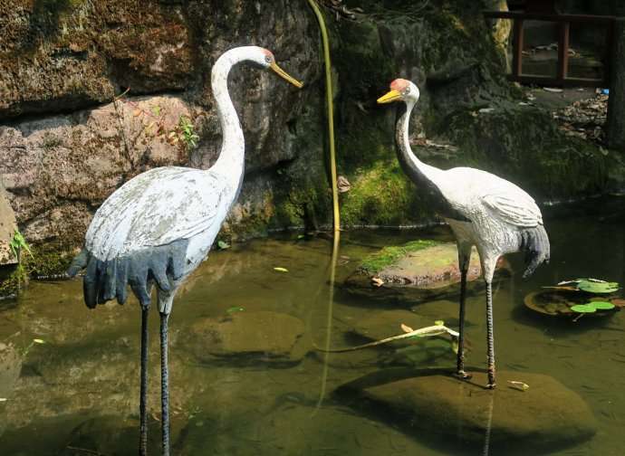 在麓山寺后,古樹(shù)環(huán)抱,有泉從石罅中溢出,冬夏不涸,清洌甘甜,清澈透明。白鶴泉有“麓山第一芳潤(rùn)"之稱。相傳古時(shí)候曾有一對(duì)仙鶴常飛至此因而取名白鶴泉,有趣的是以泉水煮沸沏茶,蒸騰的熱氣盤(pán)旋干杯口,酷似白鶴。曾有寺僧砌石為井如鶴形,刻“白鶴泉"三字于崖上,并建有一石碑。清光緒三年(公元1877年),糧道夏獻(xiàn)云在泉上建亭,抗戰(zhàn)時(shí)被毀,解放后又新建一亭,碧瓦朱欄,頗見(jiàn)風(fēng)雅?,F(xiàn)泉側(cè)建有茶室,用清冽的白鶴泉水沏茶,供游客品嘗。