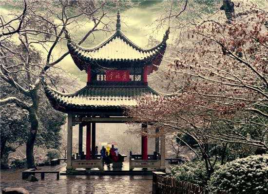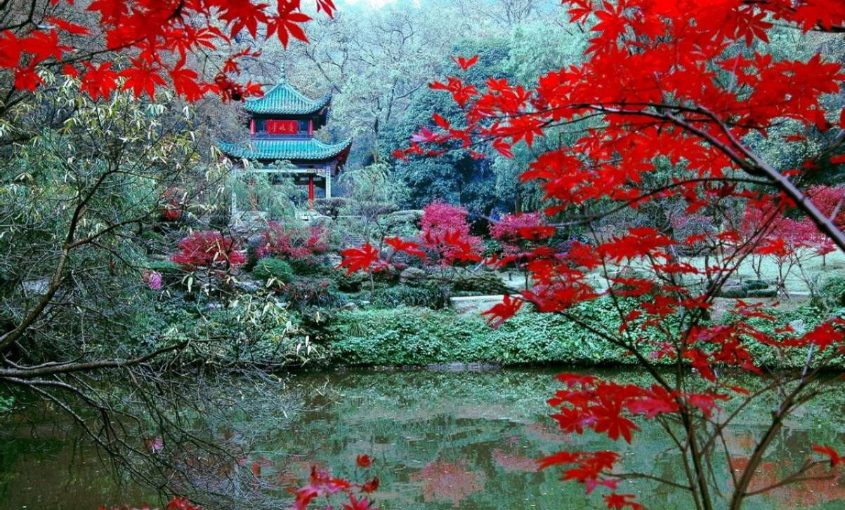 袁枚到了清風(fēng)峽,只見(jiàn)這里三面環(huán)山,楓葉紅的像火,中間開(kāi)闊處有座亭子,石柱子,琉璃瓦,飛檐高挑。亭子的匾額上寫(xiě)著“紅葉亭”三個(gè)大字,柱子上刻了一副對(duì)聯(lián):“山徑晚紅舒,五百夭桃新種得,峽云深滴翠,一雙馴鶴待籠來(lái)?!痹犊戳藢?duì)聯(lián),不住點(diǎn)頭,望望匾額,好像想說(shuō)什么,又沒(méi)說(shuō)出口來(lái)。他離開(kāi)了清風(fēng)峽,參拜了麓山寺,觀賞了白鶴泉,登上了 云麓宮,才興盡下山。