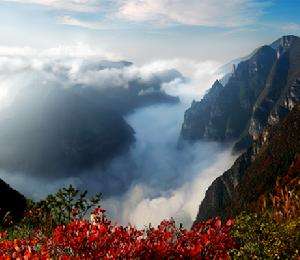 上升峰海拔高度780米。位于神女溪東岸6公里處,七里塘東側(cè)。上升峰山勢險峻峭拔,尖峰高突,巍然屹立。其一角斜上,飄飄欲飛,直上云霄,猶如巨鳥飛升九天。因此得名上升峰。又因峰形似鯤鵬展翅,扶搖直上,當?shù)匕傩沼址Q它為老鷹巖。到達上升峰頂,可以遠看萬里長江,截斷巫山云雨,一水奔騰,萬峰峭拔。還可看到大寧河從莽莽群峰間穿行,猶如飄在群山間的銀帶。