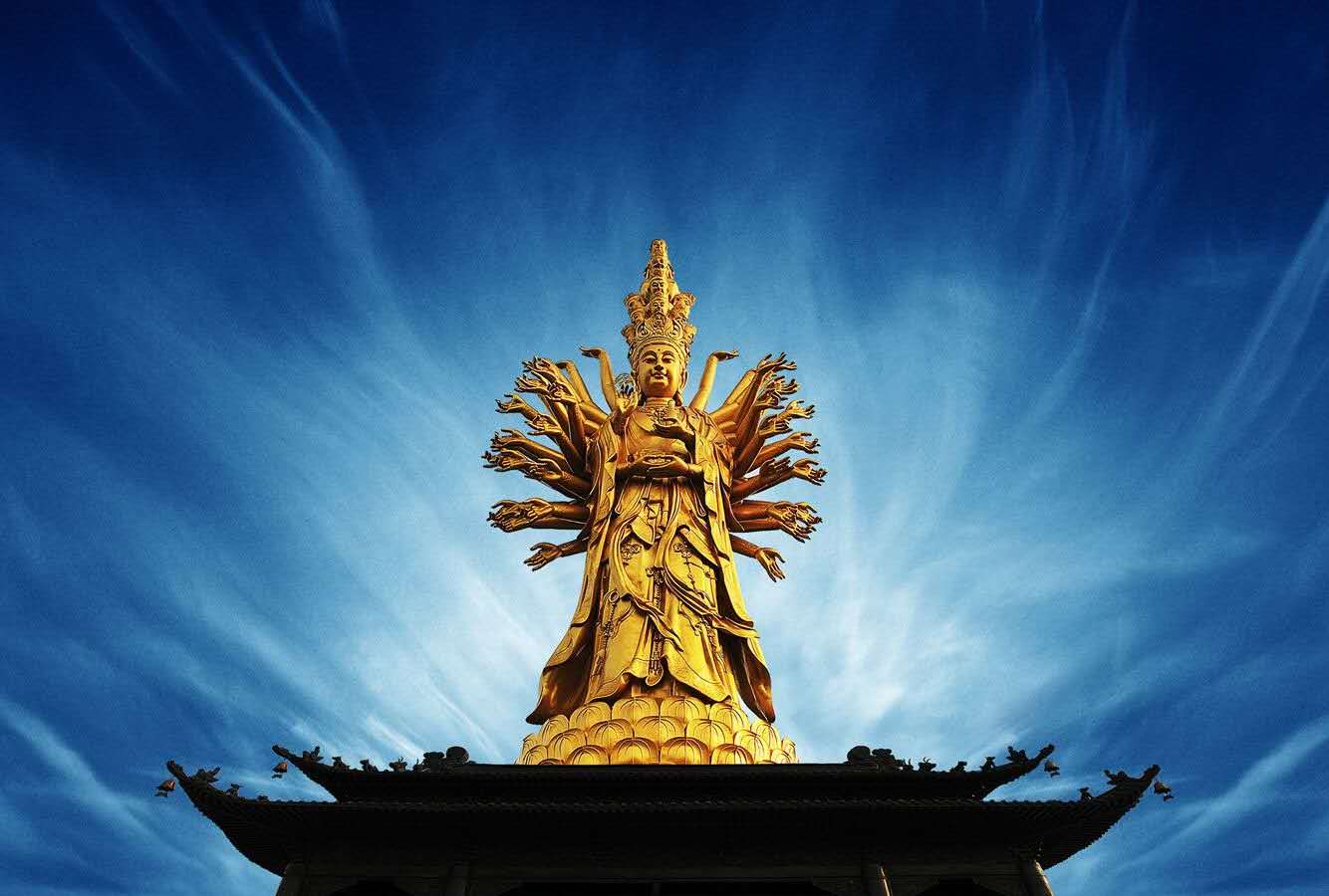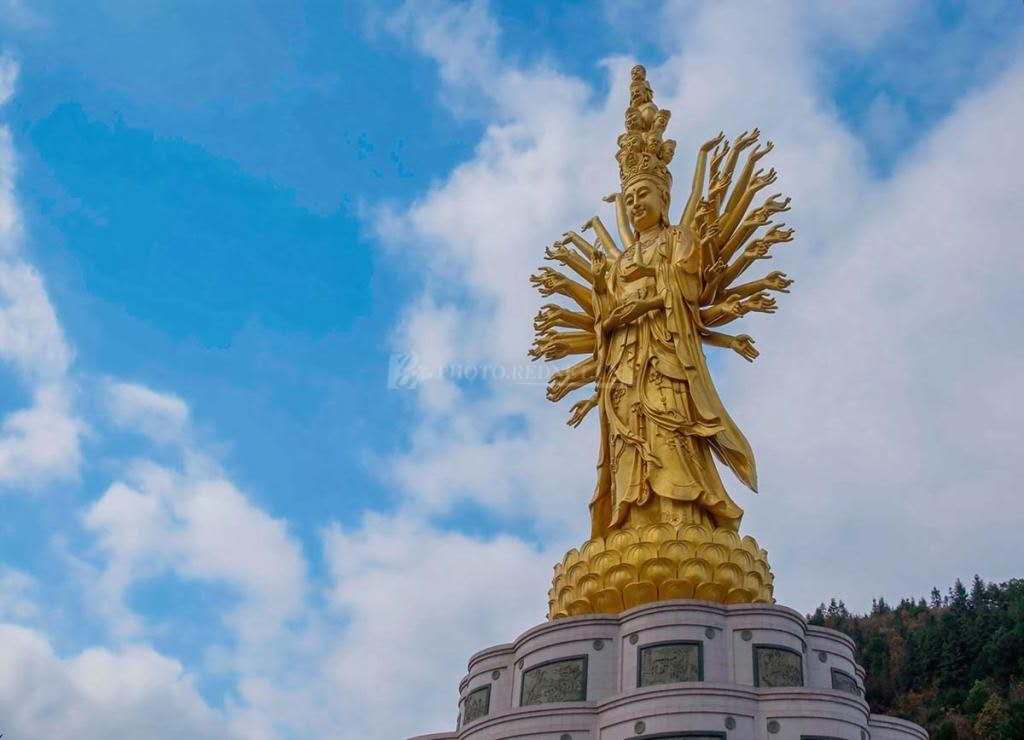 位于密印寺的后面,有高達(dá)99.19米的千手觀音, 雄偉壯觀,人在其下,如同觀音踏蓮駕云而來。萬佛靈山公園拜道呈菩提樹狀,共有吉祥、如意、蓮生、平安四大廣場,共有臺(tái)階619級(jí),象征觀世音菩薩誕辰之日。主佛像周圍還有33尊觀音化身像,圍繞主佛像。