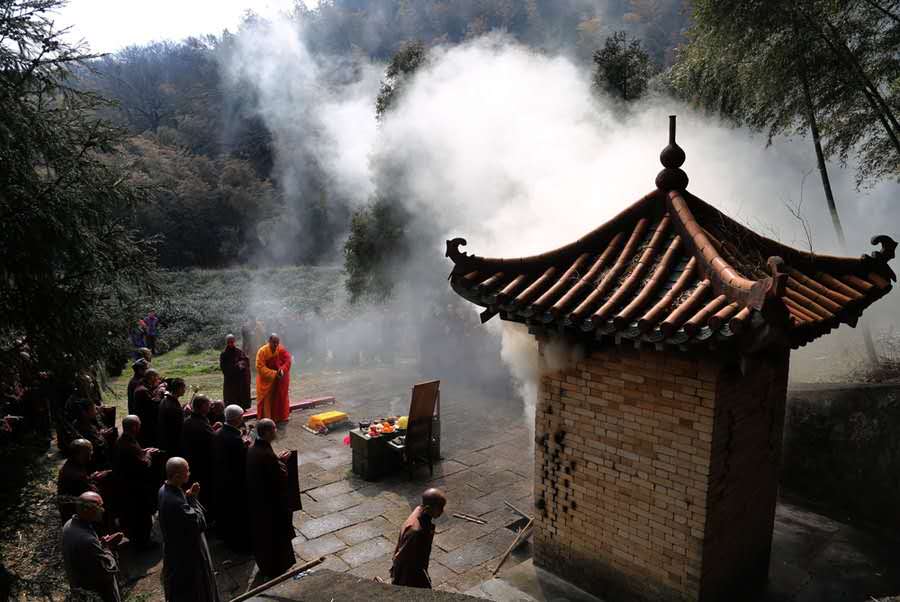 不久,法海禪師行單上的苦行生活圓滿結(jié)束,開始三年的閉關(guān)修行。各類勞作外緣均通身放下,一心參禪。三年圓滿時(shí),不開關(guān)門,師父靈佑禪師親自到關(guān)門外直呼“法?!敝?。禪師在關(guān)中應(yīng)聲而出,關(guān)房門窗毫無損壞,是圓滿得道的標(biāo)志。一時(shí)間,合寺內(nèi)外僧俗大眾皆來親近問道,為避俗諱,乃受師命,游歷江西廬山等地,終至江蘇鎮(zhèn)江氏俘山的一片荒林中駐錫禪修。時(shí)隔不久,由當(dāng)?shù)匦疟娬f明,乃知氏俘山中自己的駐地于東晉時(shí)曾建過名為澤心寺的道場。在密林的荒煙蔓草間,禪師居然尋獲到已被毀壞的殘佛,于是,法海禪師燃燒一節(jié)指,誓愿重修道場,為眾生樹立伽藍(lán)。于是開山挖田,刻苦勞作,漸漸贏得當(dāng)?shù)孛癖娭С?,開始建設(shè)寺院。