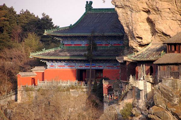 元至元二十二年至泰定五年(1285~1328年)在山中大建宮觀,南巖宮是其一。現(xiàn)僅存宮中石殿,石雕仿木結(jié)構(gòu),殿內(nèi)有“天子臥龍床”組雕和“三清”塑像,四面環(huán)立500鐵鑄靈官塑像,均生動(dòng)逼真。殿外遠(yuǎn)近有疊字峰、金鼎峰、滴水崖、崇福崖、白龍?zhí)兜葎倬?,更有仙山樓閣之妙。版權(quán)所有山東聊城聊之旅國(guó)際旅行社有限公司,轉(zhuǎn)載必究!殿外崖前有雕龍石柱,橫出欄外2.9米,寬僅30多厘米,上雕盤龍,龍頭置一小香爐,俗稱龍頭香。石殿右下方崛起一峰,上建梳妝臺(tái)、飛身巖、相傳為“真武”舍身成仙之所。