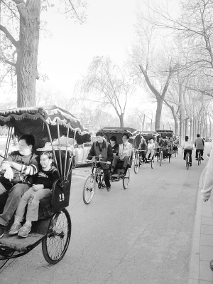 什剎海的“胡同游車夫”會載著你鉆過大大小小的胡同,一一到達(dá)他介紹過的景點,并且承諾,如果你想進(jìn)去游覽,他會在門口守候。這種形式,頗受外國游客歡迎,因為他們很怕迷失在胡同里。據(jù)“胡同游車夫”介紹,老胡同就像個迷宮,尤其是在什剎海。所以,往那些飛奔的三輪車?yán)锿?,還是韓國、日本、美國游客居多。
