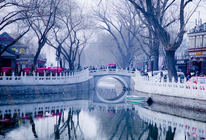 什剎海,是北京傳統(tǒng)風(fēng)貌保存較完好的地區(qū)之一,“銀錠觀山”是燕京小八景之一,享有很高的知名度,加之這里是往來恭王府、宋慶齡故居、火神廟和荷花市場等地的“中轉(zhuǎn)站”,高峰時每天經(jīng)過銀錠橋或來此觀光的游客超過2萬人次。