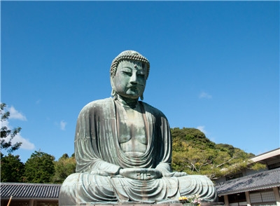 鐮倉大佛位于古都鐮倉的凈土宗寺院高德院內(nèi)的阿彌陀如來青銅坐像俗稱鐮倉大佛,是古都鐮倉的象征,大佛凈高11.3米,連臺座高13.35米,重約121噸。佛像建造于1252年,大佛的較平的面相、較低的肉髻和前傾的姿勢等,具有鐮倉時代流行的宋代佛像的風格,是鐮倉時期的代表性塑像,被定為日本國寶。與奈良東大寺大佛在后世經(jīng)歷多次補修不同,鐮倉大佛基本保持了造像當初的形態(tài),所以非常珍貴。