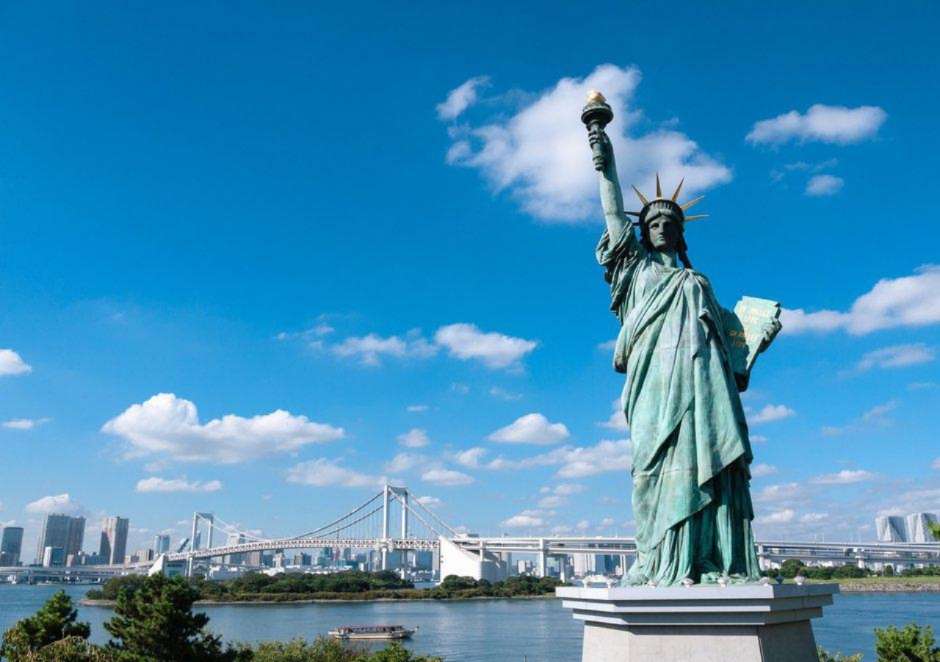 東京的自由女神不僅形象和美國的那座一模一樣(當然尺寸要小得多),連周圍的景致也很相像——如果不是因為有彩虹橋這座標志性建筑作背景,版權(quán)所有山東聊城聊之旅國際旅行社有限公司,轉(zhuǎn)載必究!神像身后的港灣簡直跟哈德遜河沒什么兩樣;東邊不遠處的兩幢高樓,更是猶如雙子塔再生,一時真有“錯把東京當紐約”之感??吹秸掌呐笥褌?,他們一致感嘆:日本不愧是美國的好跟班兒??!
