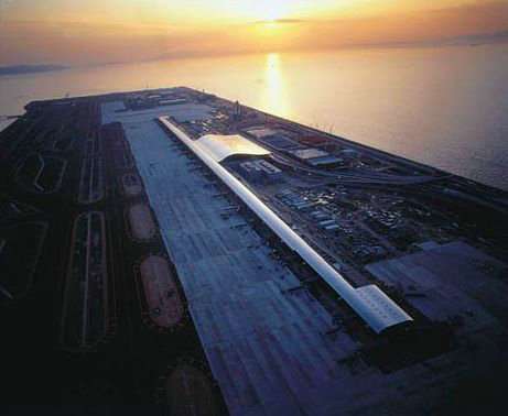 關(guān)西國(guó)際機(jī)場(chǎng)仍是一項(xiàng)建筑傳奇。由建筑師倫佐皮亞諾(RenzoPiano)設(shè)計(jì)并于1994年9月22日正式開業(yè),機(jī)場(chǎng)的外形有如一個(gè)超大飛機(jī)機(jī)身(超過一英里),屋頂則像綿延不斷的浪波。國(guó)際旅客從機(jī)場(chǎng)的頂樓出發(fā),可以瞧見建筑的整體架構(gòu),精致間復(fù)雜,別有一番特色。關(guān)西國(guó)際機(jī)場(chǎng)的國(guó)際航線到達(dá)廳在機(jī)場(chǎng)大樓1層,出發(fā)廳在4層,國(guó)內(nèi)航線到達(dá)出發(fā)廳均在2層。機(jī)場(chǎng)巴士、出租車設(shè)置在機(jī)場(chǎng)大樓1層,機(jī)場(chǎng)列車設(shè)置在大樓2層,餐飲和購(gòu)物區(qū)設(shè)置在2-3層。