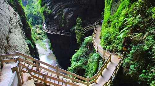 地質(zhì)奇觀——武隆地縫。武隆地縫風景區(qū),位于武隆區(qū)仙女山鎮(zhèn)境內(nèi),距縣城15公里。它是幾千萬年前造山運動而形成,屬典型的喀斯特地貌景觀,峽谷長5公里,谷深200-500米,其規(guī)模宏大,氣勢磅礴,峽谷具有雄、險、峻、秀等特點。景區(qū)內(nèi)的高山、峻嶺、峽谷、流水共同構(gòu)成一幅完美的