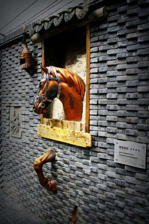 離地約1.2米。已風(fēng)化斑駁,是寬窄巷子僅存的三個(gè)拴馬石之一。百年前這里曾是北方滿蒙八旗及家屬的居住地,有騎馬出行的習(xí)慣。拴馬石是北方文化在川西的符號(hào)性表現(xiàn)。《磚》文化景觀墻是井巷子中一條400米長(zhǎng)的東西走向的雕塑墻,是中國(guó)第一個(gè)以磚為載體的博物館,一塊塊不同歷史斷面的舊磚,經(jīng)過(guò)藝術(shù)的創(chuàng)作,壘砌成臺(tái)、城、壁、道、碑、門等成都的歷史文化片段,闡述著千年成都,演繹了百年歷史。文化墻的西段,從“寶墩遺城、金沙竹泥”到“羊子土坯、秦筑城廓”,再?gòu)摹皾h磚遺風(fēng)、唐建羅城”到“宋磚古道、明末毀城”。展示了成都的滄桑歷史。