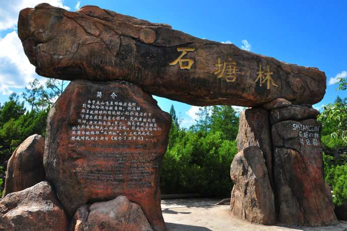巖丘、噴氣錐、熔巖陷谷、地下暗河等神奇景觀,堪稱“火山地質博物館”。石塘內土壤瘠薄,石縫中卻生長著高大挺拔的興安落葉松、高山檜柏、偃松(爬地松),翠綠欲滴,金星梅、銀星梅長開不懈,還有大片低等植物苔蘚。石塘林內,石與林相依,花與草相融,清亮的石溪、靜靜的水潭時隱時現(xiàn),跳躍的石兔時而發(fā)出清脆的鳴叫聲,構成了一幅奇麗壯觀、活潑靈動、巧奪天工的自然畫卷。許多中外游人來到這里,無不被這石與林的巧妙結合而震撼,都贊其為世界奇觀“石塘林”。