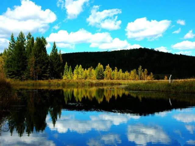 五里泉東面是雄偉的大興安嶺主脈,其他三面是長滿鮮花芳草的濕地。清晨,常有一條飛升的白霧,方圓三里纏繞著五里泉,像為五里泉披了一塊朦朧的面紗。每天清晨,不少