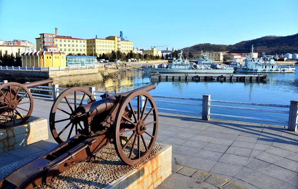 旅順軍港地處遼東半島西南端,黃海北岸。港口門(mén)開(kāi)向東南,東側(cè)是雄偉的黃金山,西側(cè)是老虎尾半島,西南是巍峨的老鐵山,周?chē)h(huán)守旅順港,天然形勝被譽(yù)為“天下奇觀”。