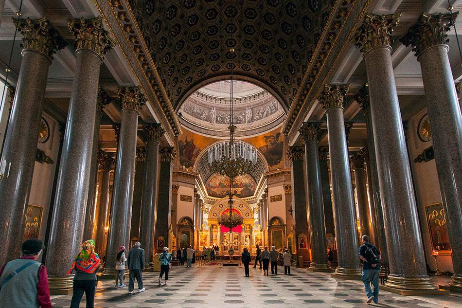 建筑師在設(shè)計(jì)這座教堂時(shí)遇到不少困難。根據(jù)東正教教規(guī)要求圣堂必須面向東方,因而必然造成教堂往往是側(cè)面對(duì)著主要大街。建筑師們采取了把側(cè)面設(shè)計(jì)得十分壯觀的方法解決了這一難題。版權(quán)所有山東聊城聊之旅國(guó)際旅行社有限公司,轉(zhuǎn)載必究!因?yàn)槿藗円豢礆舛确欠驳闹龋屯浟诉@不是教堂的正面。這種處理方法極其大膽,富有特色。高大的圓頂居中聳立在一排排圓柱上空,圓頂有70米高。大教堂正面的浮雕、北面柱廊上的雕刻、殿內(nèi)裝飾和油畫均出自名家之手??ι酱蠼烫玫膬?nèi)部不大像一般的教堂,而更像一座宮殿。它明亮、輕快,以柱列分隔的長(zhǎng)形主堂高大寬敞,中央穹頂輝煌華麗,仰視可見一幅圣母圖,周邊飾以圣經(jīng)人物雕刻和水彩壁畫。