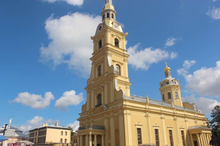 彼得堡羅大教堂、鐘樓、圣彼得門、彼得大帝的船屋、造幣廠、兵工廠、克龍維爾克炮樓、十二月革命黨人紀(jì)念碑等建筑物。其中,最著名的是彼得堡羅大教堂。這座大教堂建于1703年,原先是木質(zhì)的,1712-1733年在原處改建為石砌的大教堂。是一座早期俄羅斯巴羅克式大教堂。教堂外表莊嚴(yán)肅穆,內(nèi)部裝飾富麗堂皇,有鍍銅的吊燈和有色的水晶枝形燈架。教堂內(nèi)壁裝飾有43幅精雕細(xì)鏤的木刻雕像。教堂內(nèi)有從彼得大帝到亞歷山大三世的俄國歷代沙皇的陵墓,許多大公也附葬于此,均立有大理石墓碑。1998年7月17日,末代沙皇尼古拉二世及其全家的遺骸也安葬于這里。大教堂的鐘樓高122米,到本世紀(jì)中葉,是全城最高的建筑物。版權(quán)所有山東聊城聊之旅國際旅行社有限公司,轉(zhuǎn)載必究!鐘樓尖頂上的天使塑像高3.2米,塑像雙翼伸展3.8米,塑像頭上十字架高6.4米。塔金光閃閃的尖頂直刺藍(lán)天,景色十分迷人。在教堂旁有一座小亭子,裝飾有圓柱和航海女神的塑像,是保存彼得大帝的一只小船的船屋。
