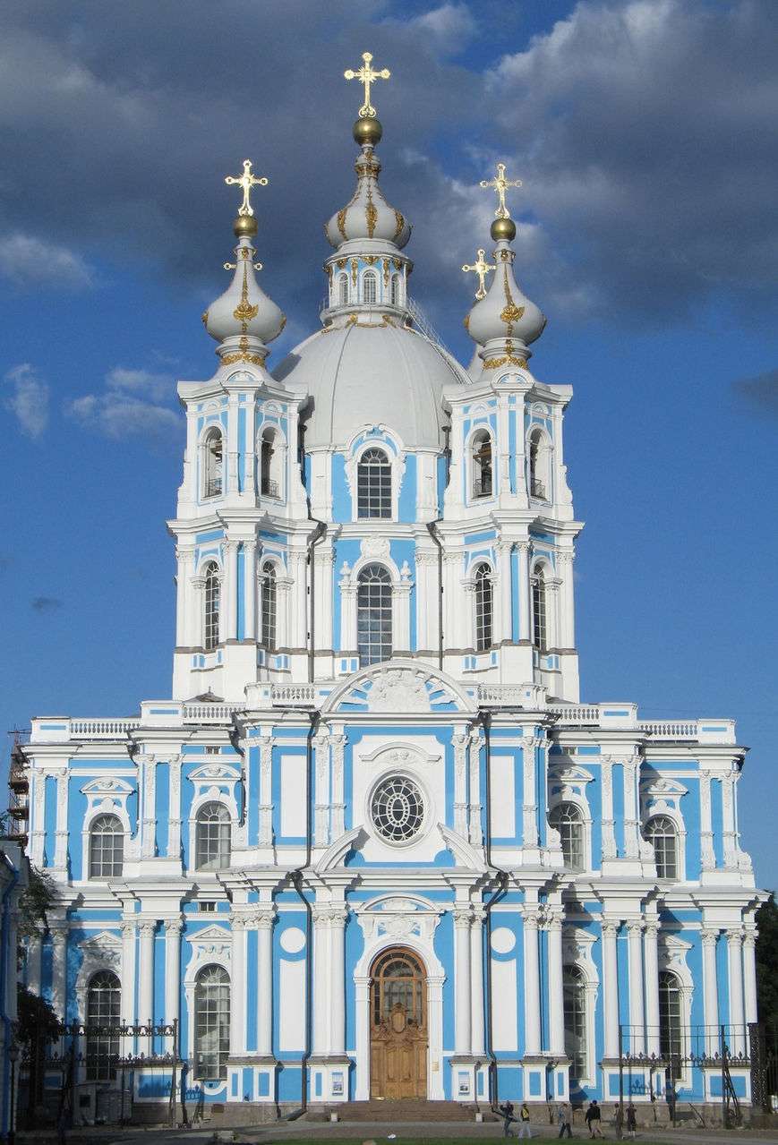 斯莫爾尼宮是一座外觀典雅的三層巴洛克式建筑,極其豪華。其部分房屋曾是寄宿學(xué)校,但由于修道院的樓舍不適合作教室用而遷出。