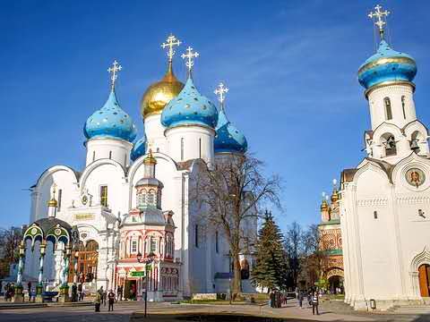 亦譯特羅伊察修道院。1337年一個名叫謝爾蓋·拉多涅日斯基的僧侶在莫斯科近郊謝爾蓋耶夫(即今扎戈爾斯克)的偏僻森林里建立一座三圣小教堂和小道房,為該修道院的前身。后來凡愿在此出家的人,必須自造小道房并自辟膳食用地,由此發(fā)展而成為東北羅斯最富有的大修道院。1744年獲大修道院稱號,是東北羅斯古典建筑群的代表。修道院石墻高達15米,成為莫斯科北方重要防御據(jù)點。它擁有幾個世紀(jì)以來、歷經(jīng)各個朝代改建和擴建的各種形式的教堂和附屬建筑群。包括三圣教堂、杜霍夫斯基降靈教堂、圣母升天教堂,教皇宮殿和斯摩棱斯克教堂(1748年),以及齋房、鐘樓、慈善醫(yī)院等。其中最著名的三圣教堂建于1423-1442年,是俄羅斯早期白石建筑藝術(shù)典范。