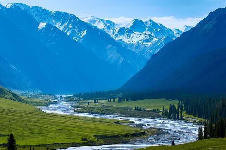 “夏塔”是蒙古語 “階梯” 之意。昭蘇縣城夏塔是一個(gè)富有傳奇色彩的勝地,這里瀕臨高峰林立的天山主脈。