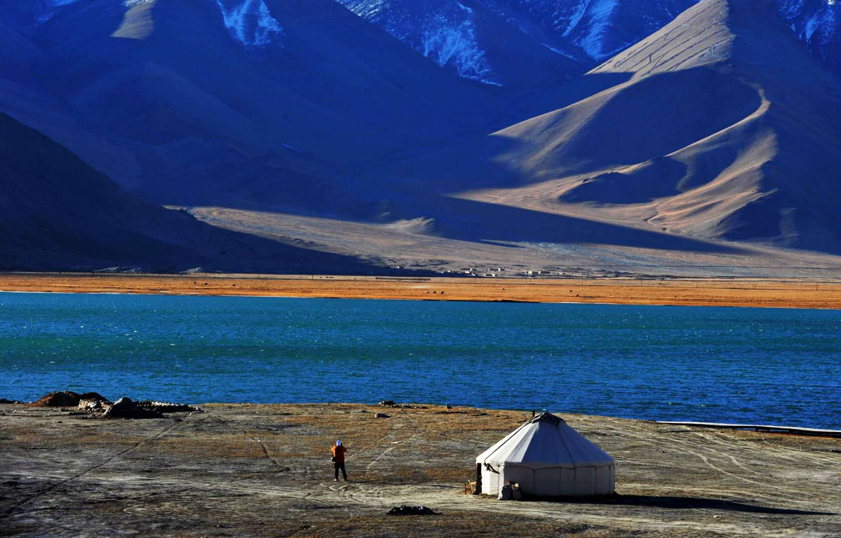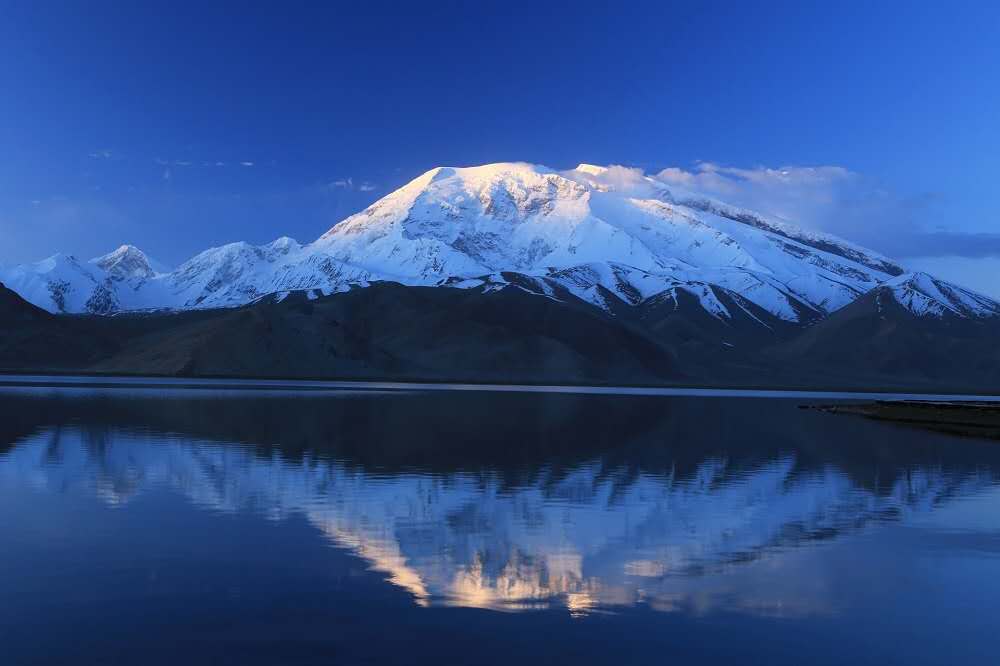 慕士塔格峰位于阿克陶縣與塔什庫爾干塔吉克自治縣交界處,海拔7509米,其雄偉高大的身軀巍然屹立于帕米爾高原之上。倒掛的冰川,猶如胸前飄動(dòng)的銀須,雄踞群山之首,故有“冰山之父”的美稱。而更多的人則是以朝圣者的虔誠來這兒領(lǐng)略慕士塔格峰與卡拉庫勒湖相映成趣的湖光山色,或搜集深深蘊(yùn)藏在慕士塔格山下,卡勒庫勒湖底深沉的文化底蘊(yùn)。