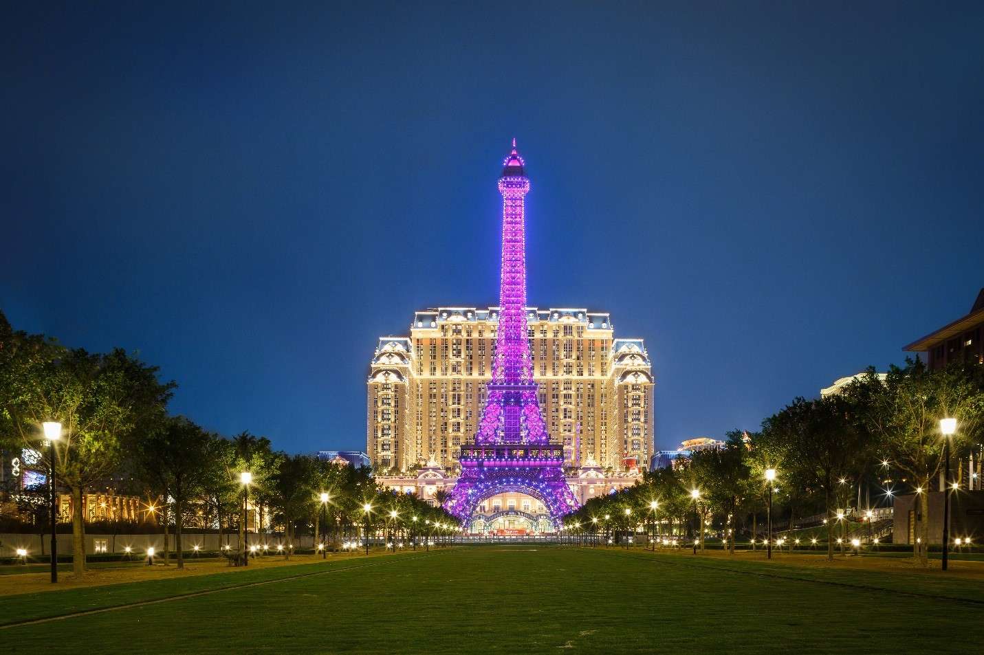 澳門巴黎人(The Parisian Macao)位澳門路氹城塡海區(qū)金光大道地段,以巴黎埃菲爾鐵塔一半的比例設(shè)計(jì)而成埃菲爾鐵塔作為地標(biāo)。