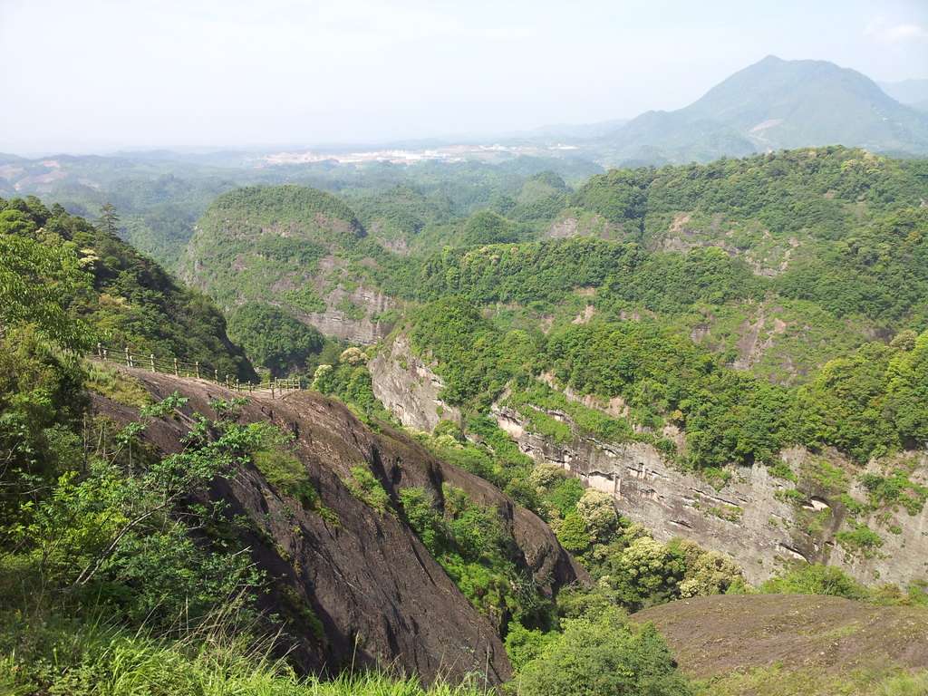 無底深淵。一座山頭由于整體崖壁受90°垂直重力崩塌風(fēng)化,被劈削得如同人工豎立起來的一座通天巨碑。