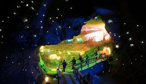 螢火蟲(chóng)水洞形成于約0.65億年至2.3億年前,全長(zhǎng)1200米,是“國(guó)家地質(zhì)公園”、國(guó)家“AAAA級(jí)旅游區(qū)”。洞內(nèi)有湖光山色、星際夢(mèng)幻、黑洞探秘、幽谷星河、穿越時(shí)空等5個(gè)景段60余個(gè)景點(diǎn)。