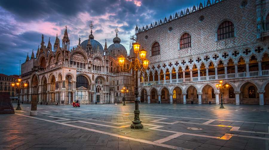 圣馬可廣場(Piazza San Marco) ,官方標準譯名圣馬爾谷廣場,又稱威尼斯中心廣場,一直是威尼斯的政治、宗教和傳統(tǒng)節(jié)日的公共活動中心。